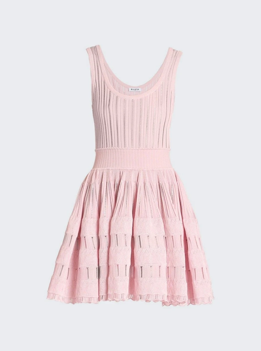 ALAIA Fluid Skater Mini Dress Rose Dragee