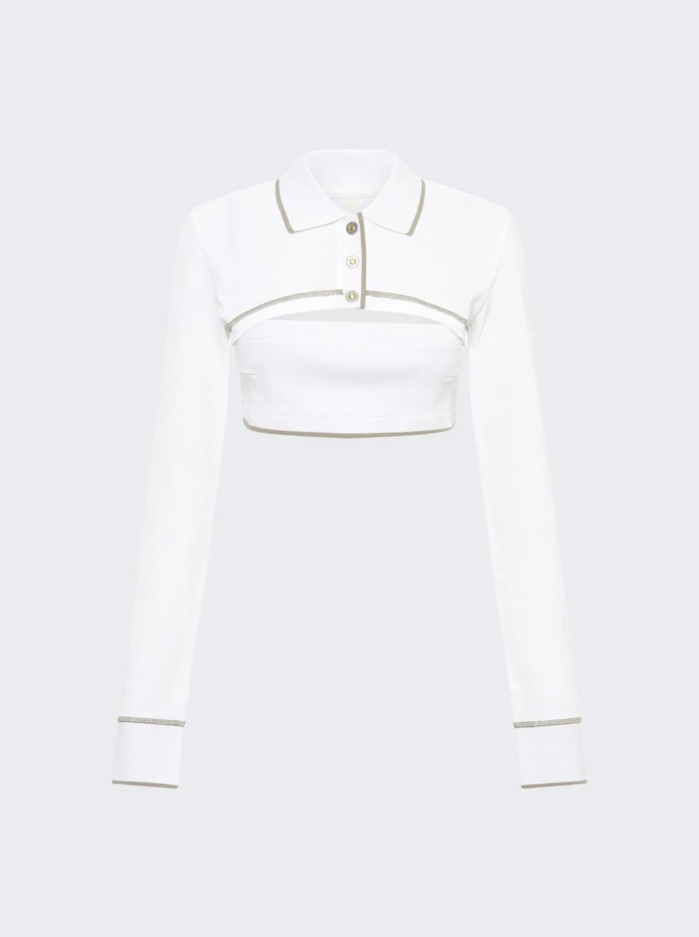 - Detailed with cut-out above bust, contrast loop cover stitch and logo engraved eyelet snaps