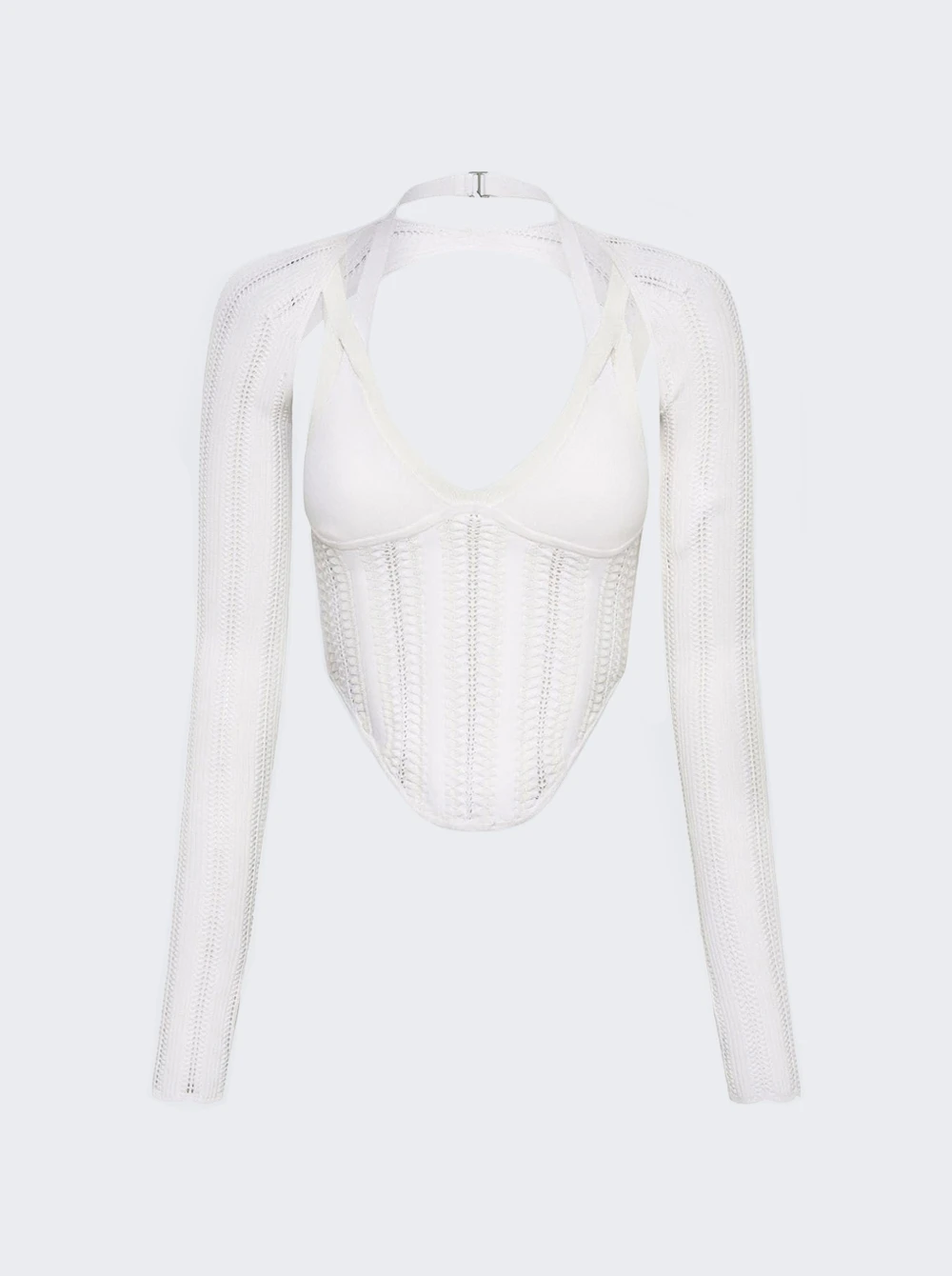 - Fitted corset top with detachable bolero sleeve
