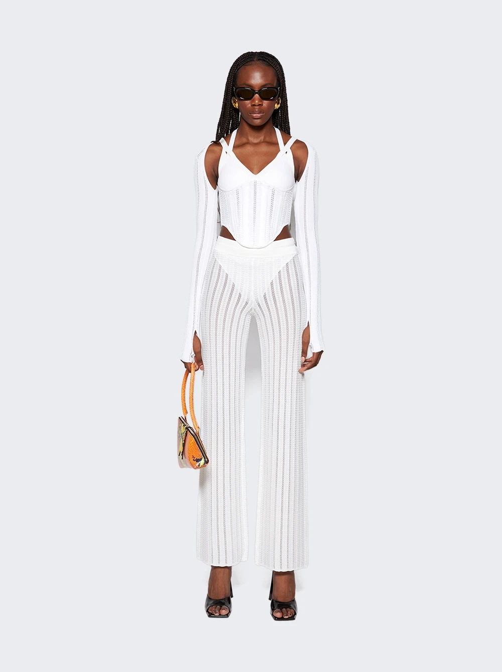 - Pointelle knit stitches create a snakeskin effect