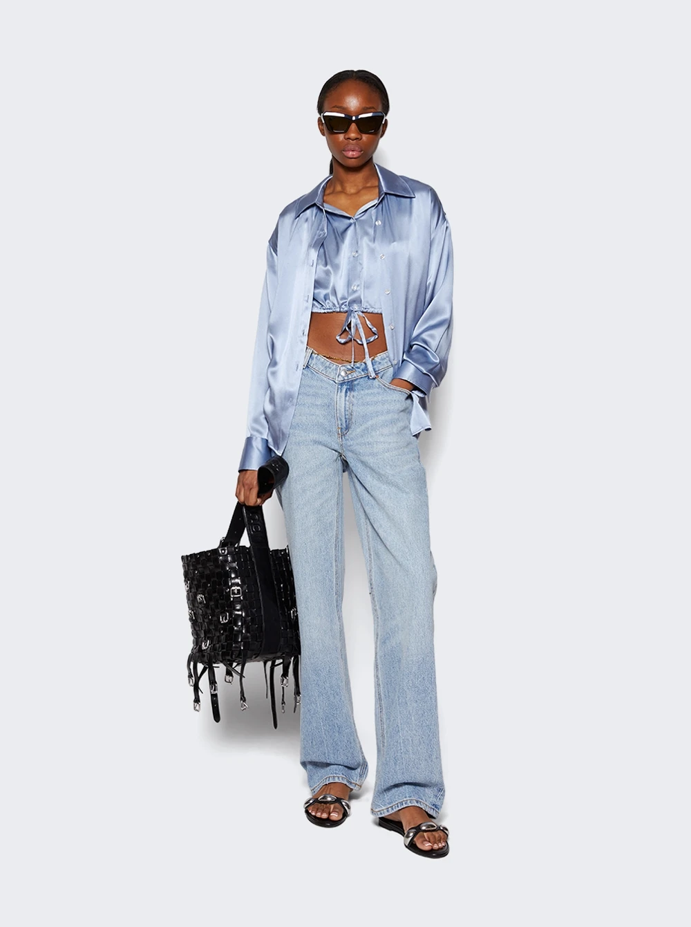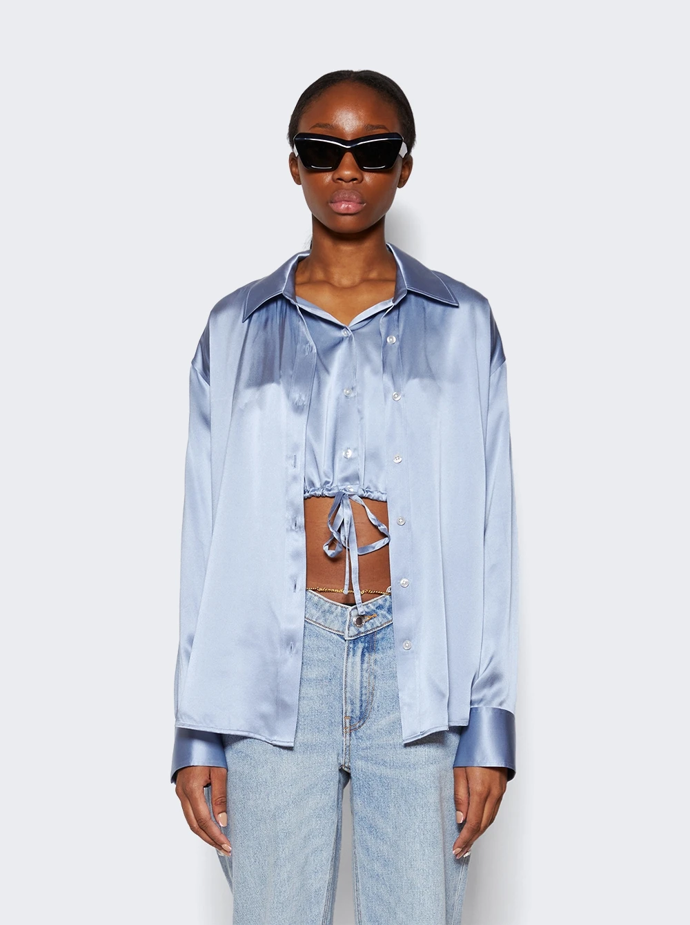 - Double layered button-up boyfriend shirt with cropped top under-layer