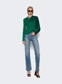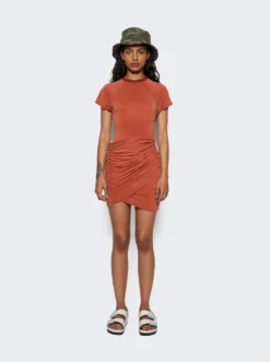 - Asymmetric draped waistline