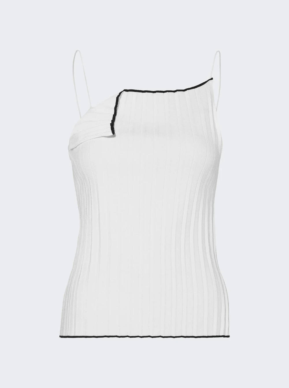 - Asymmetric plisse top with contrast trimming