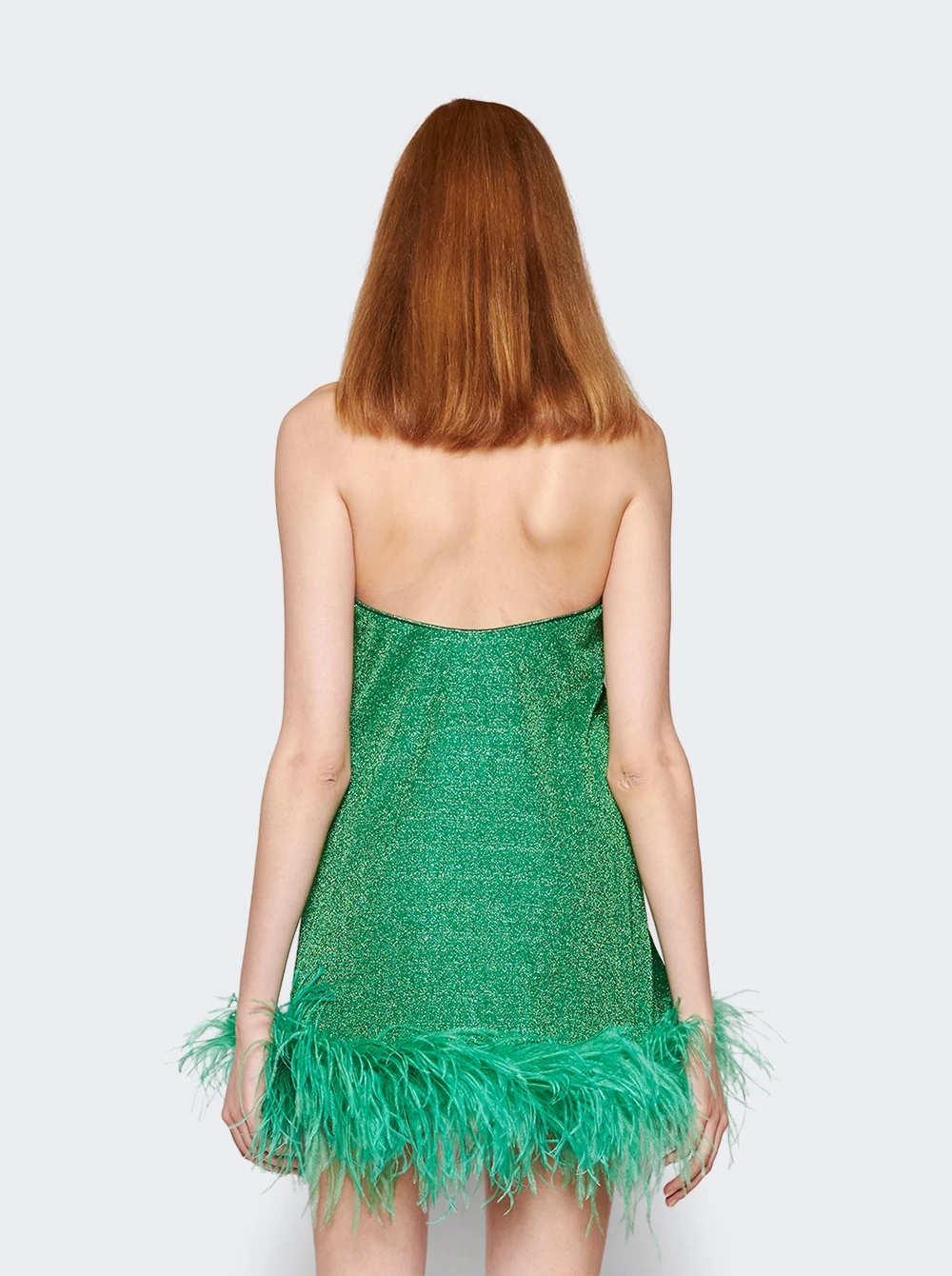Composition: 64% polyamide, 36% metallics; 92% polyamide, 8% elastane; 100% real ostrich feathers