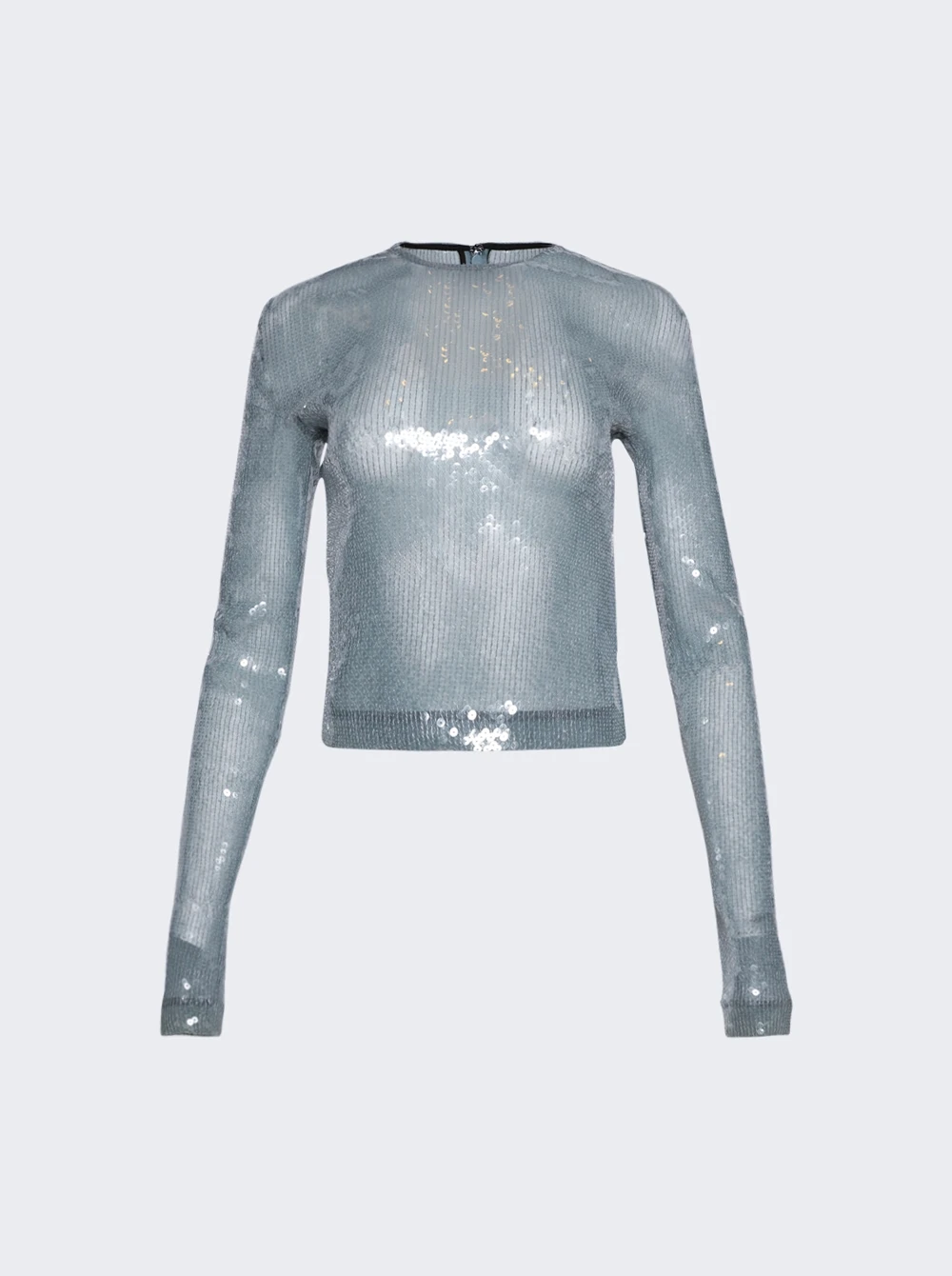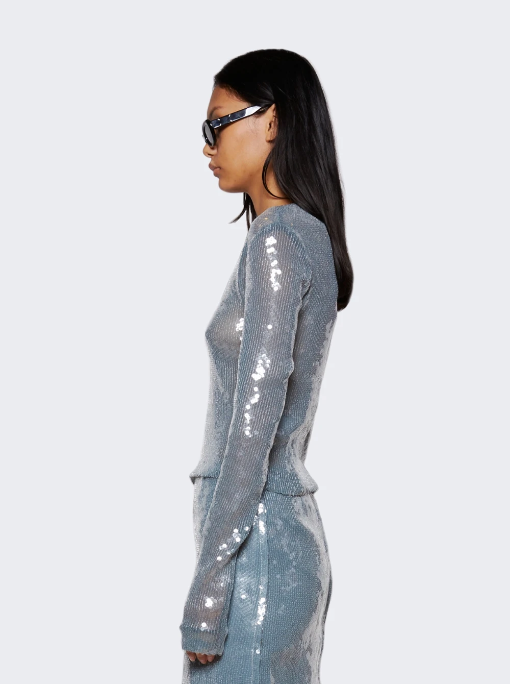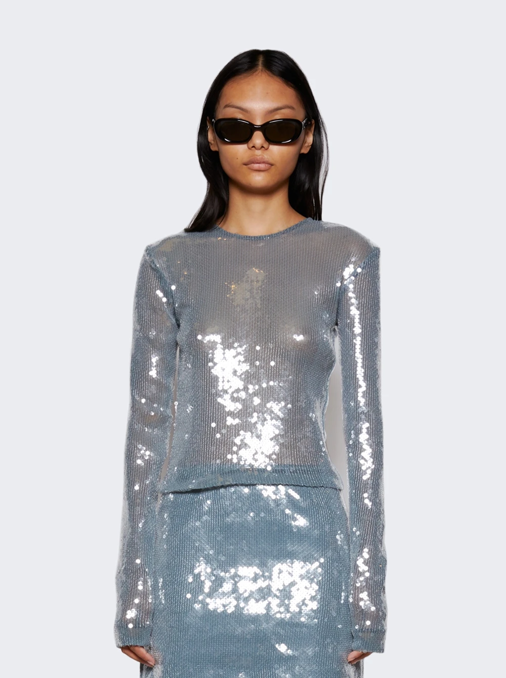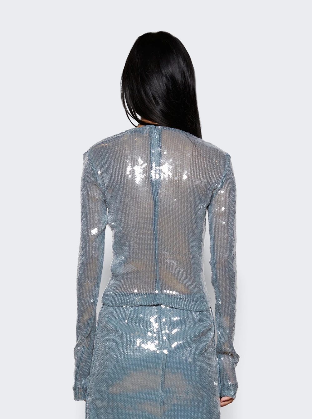 Miu Miu Chambray Logo Shirt With Mother-of-pearl Buttons Celeste