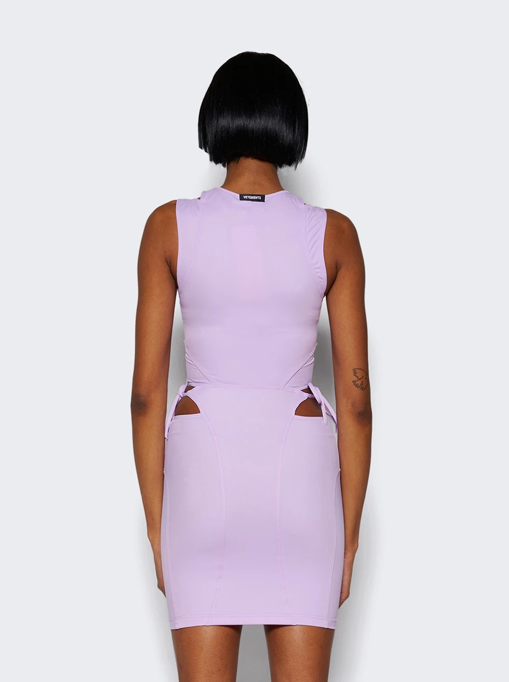 - Mini dress featuring piping throughout